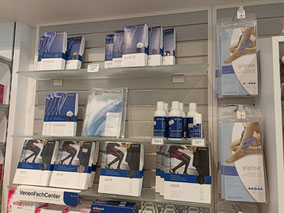 Wir messen zum Beispiel Kompressionsstrümpfe an und sind als zertifiziertes Venenfachcenter in allen Fragen rund um das Thema Beingesundheit für Sie da. Wir verfügen über eine breite Palette von